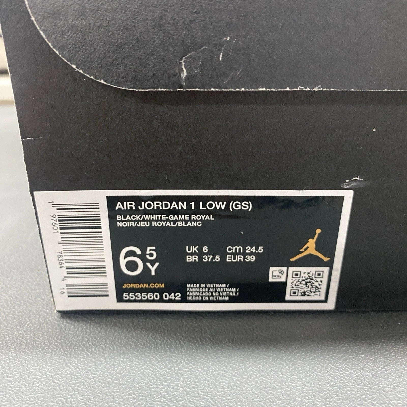 Brand New Nike Air Jordan 1 Low Retro Black Royal Toe Blue Size 6.5Y (8 Women's)