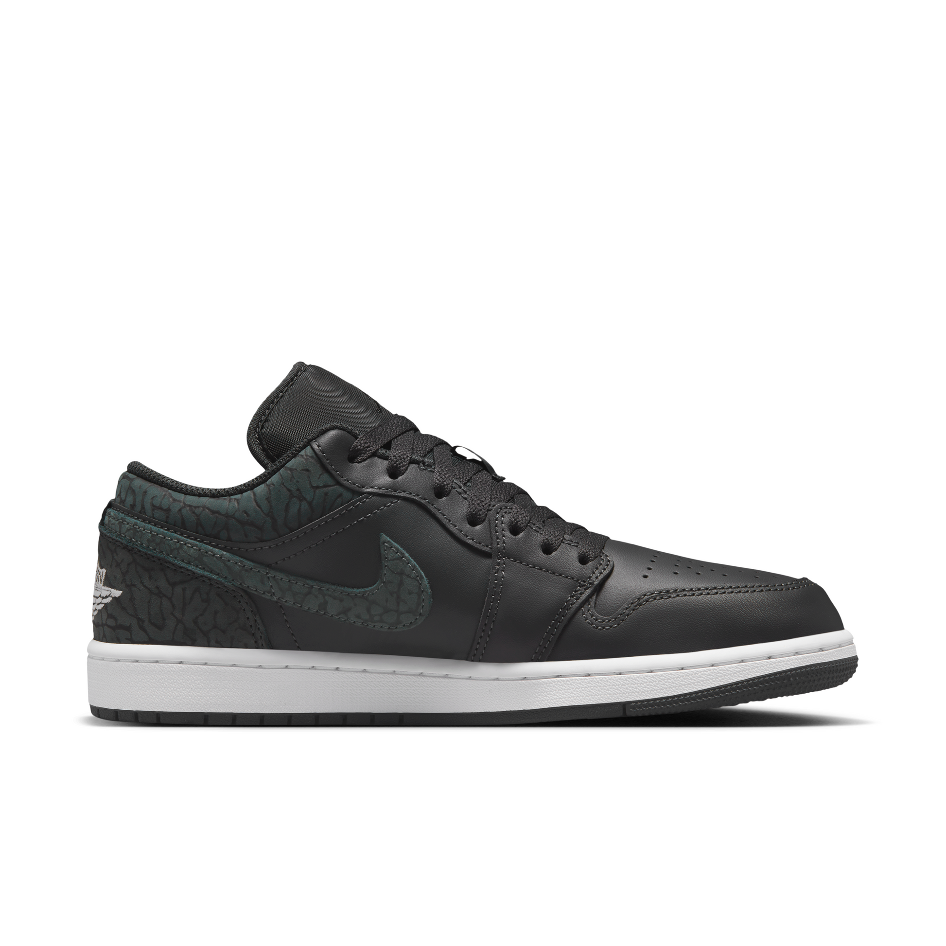 Elevate your collection with the Jordan 1 Low SE Black Elephant Men's sneakers. Crafted with premium black leather and distinctive elephant print accents, these shoes combine iconic style with lasting durability. The low-cut design ensures a comfortable fit, making them perfect for daily wear or making an impression wherever you go. Don’t miss your chance to own a pair that effortlessly blends bold aesthetics with timeless appeal.
